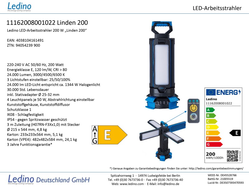 Ledino LED-Arbeitsstrahler 200 W „Linden 200“